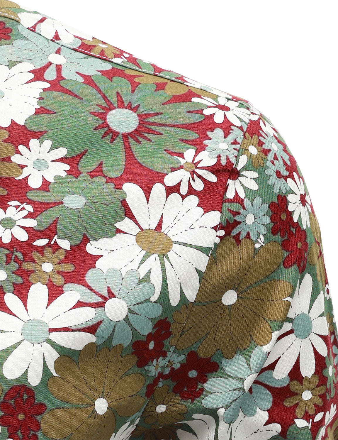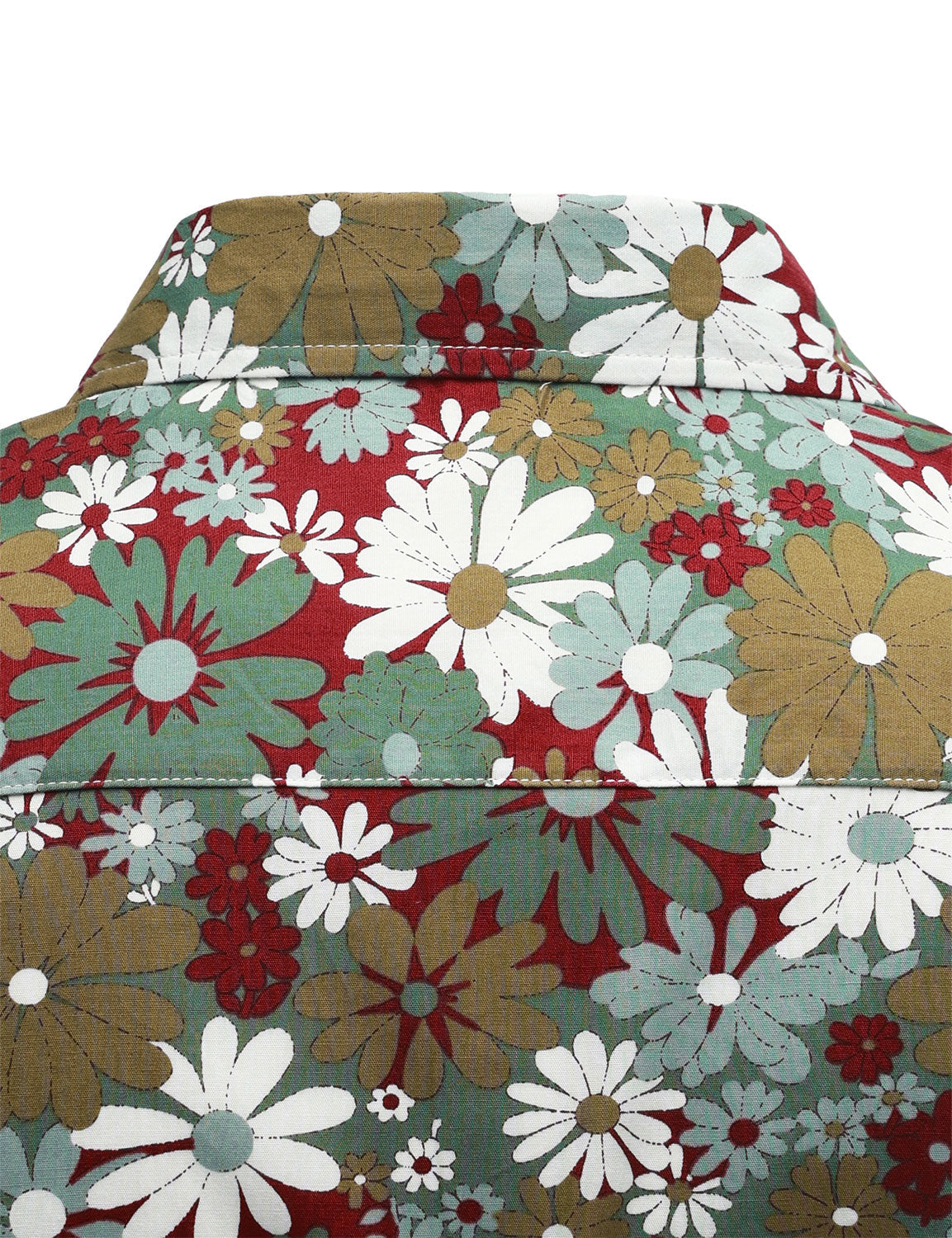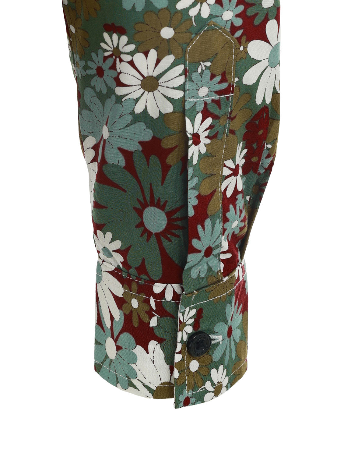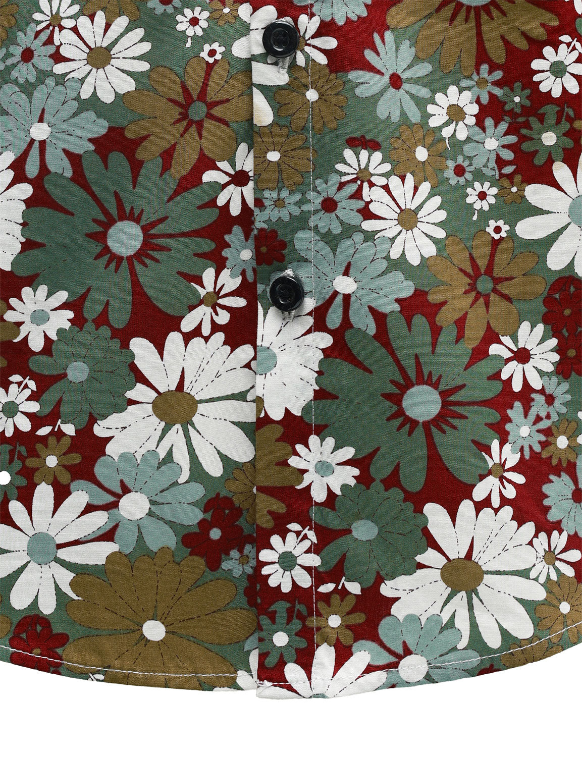 Men's Khaki Floral Cotton Button Up Long Sleeve Shirt