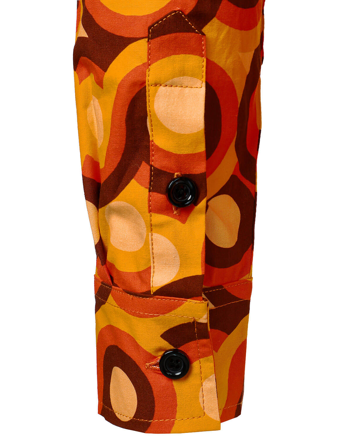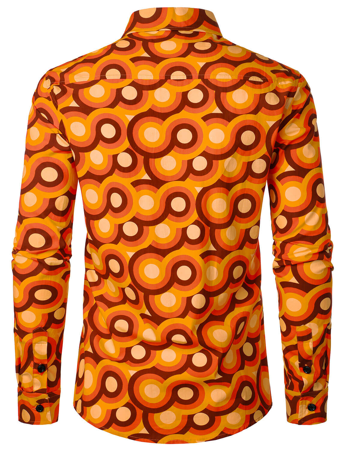 Men's Orange 70s Retro Button Up Vintage Geometric Circle Long Sleeve Shirt