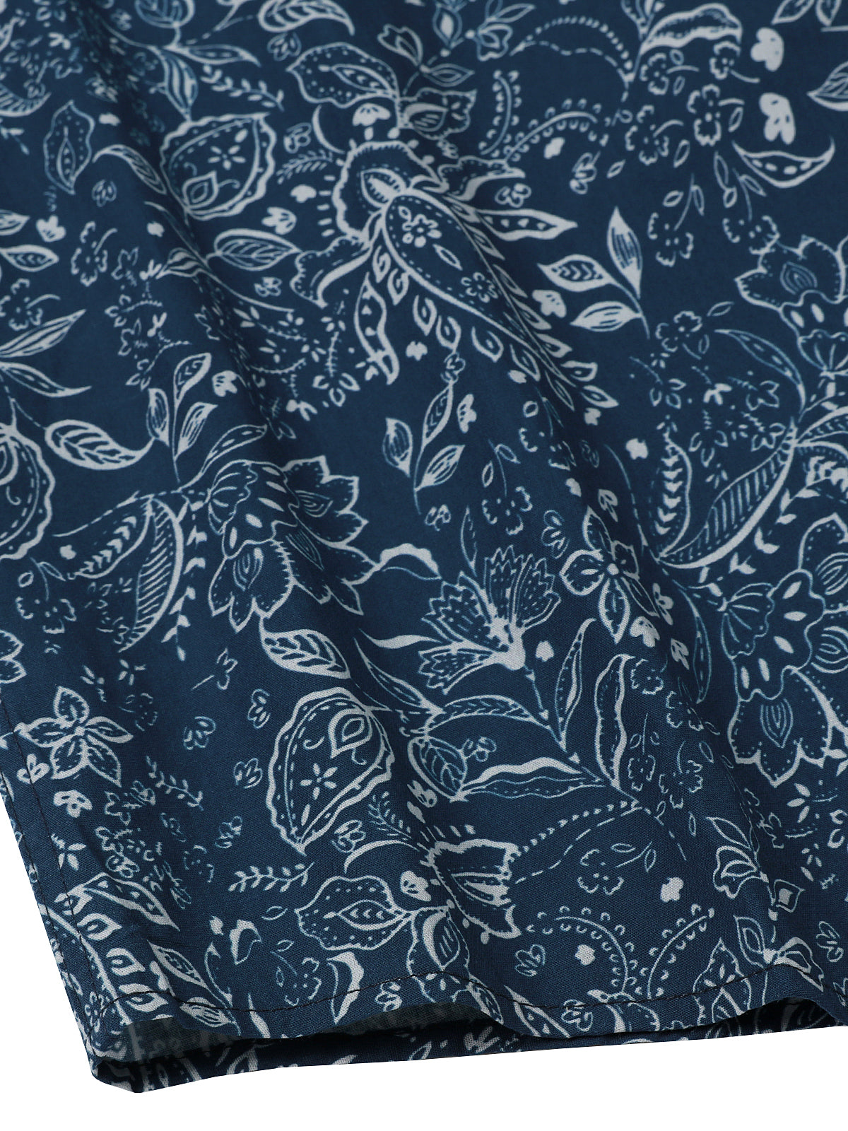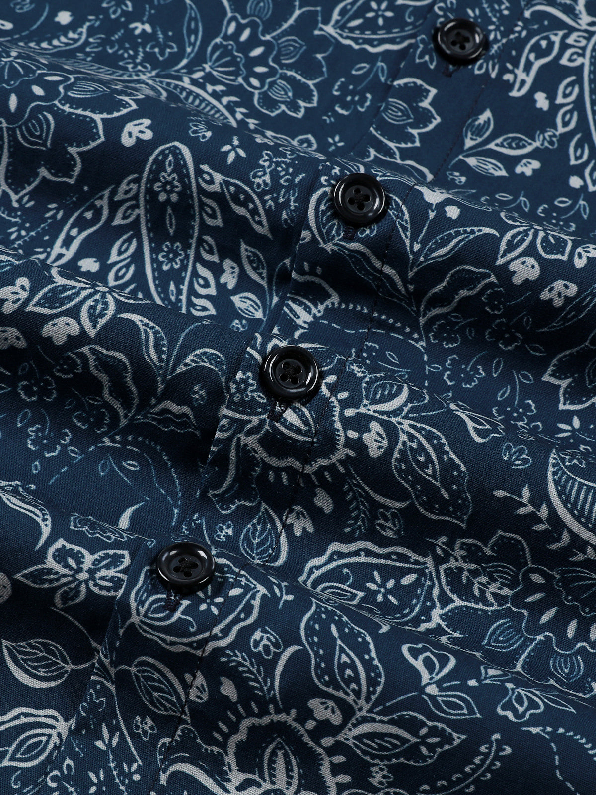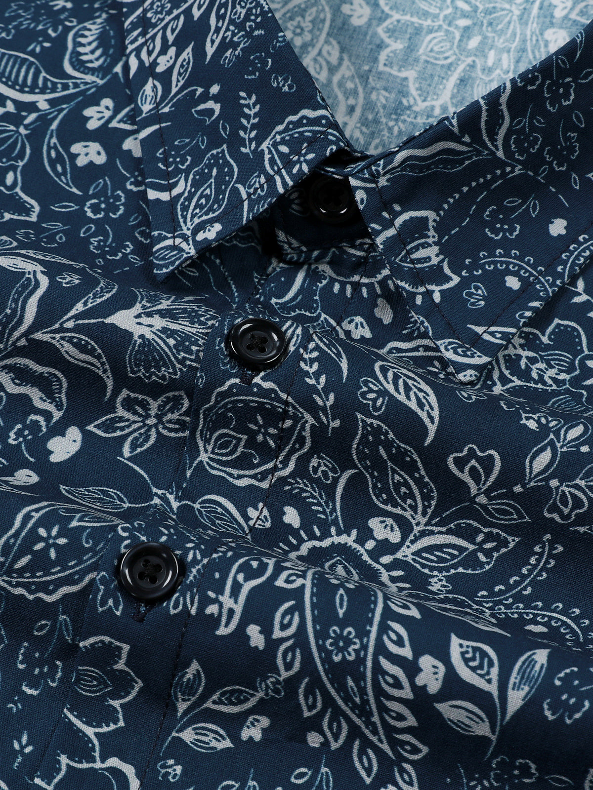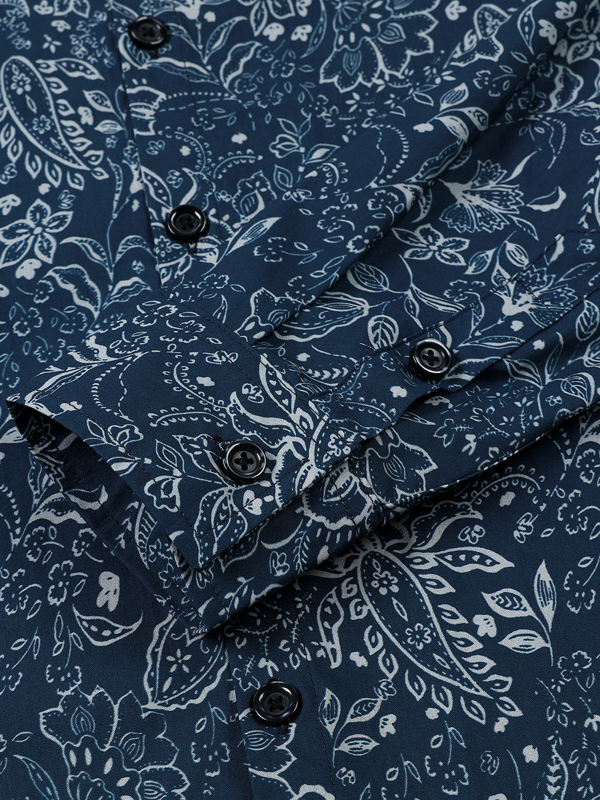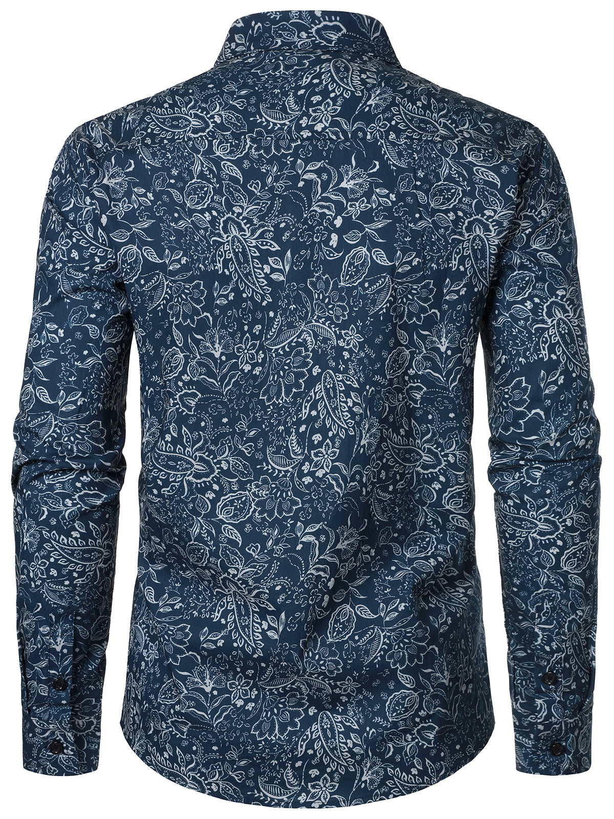 Men's Paisley Floral Cotton Blue Long Sleeve Shirt