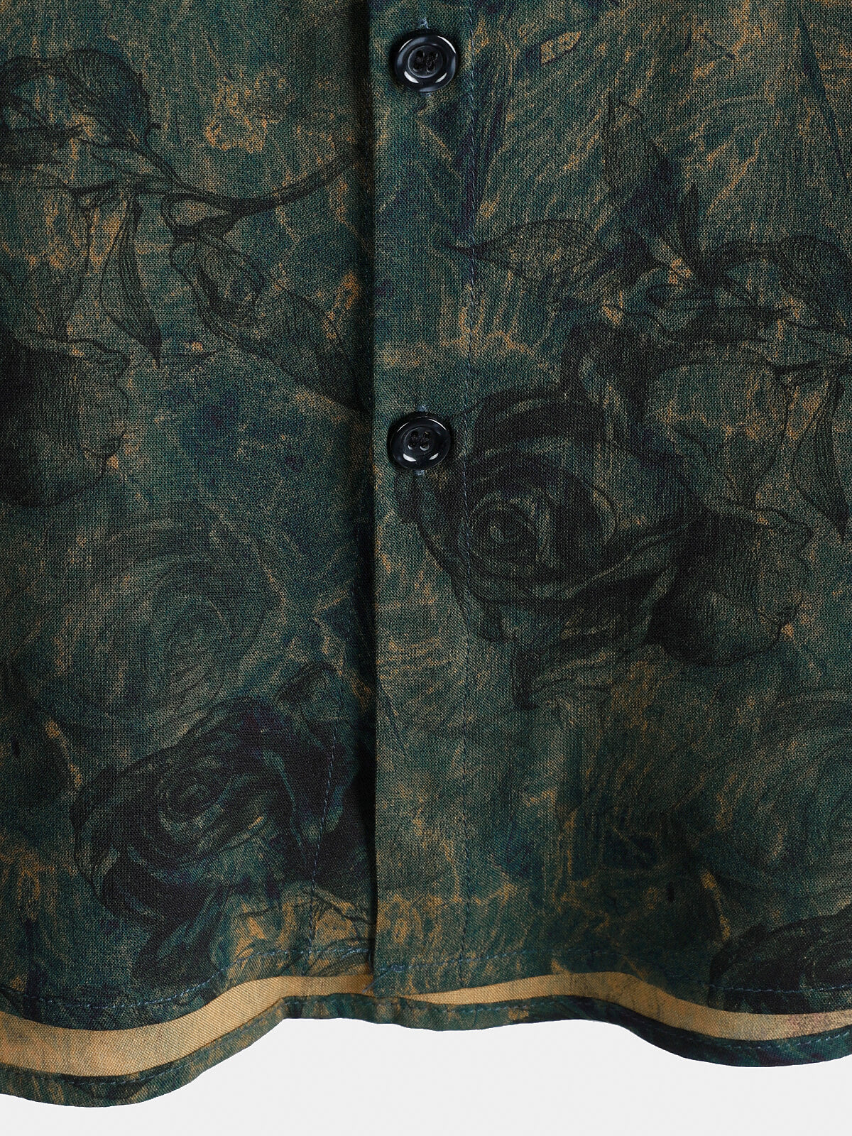 Men's Rayon Green Rose Print Vintage Short Sleeve Shirt