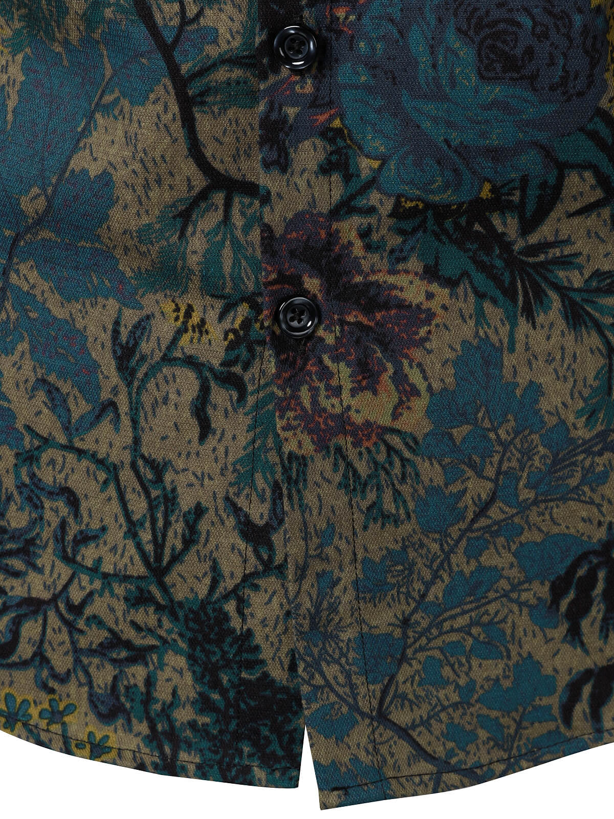 Men's Retro Floral Pattern Long Sleeve Shirt