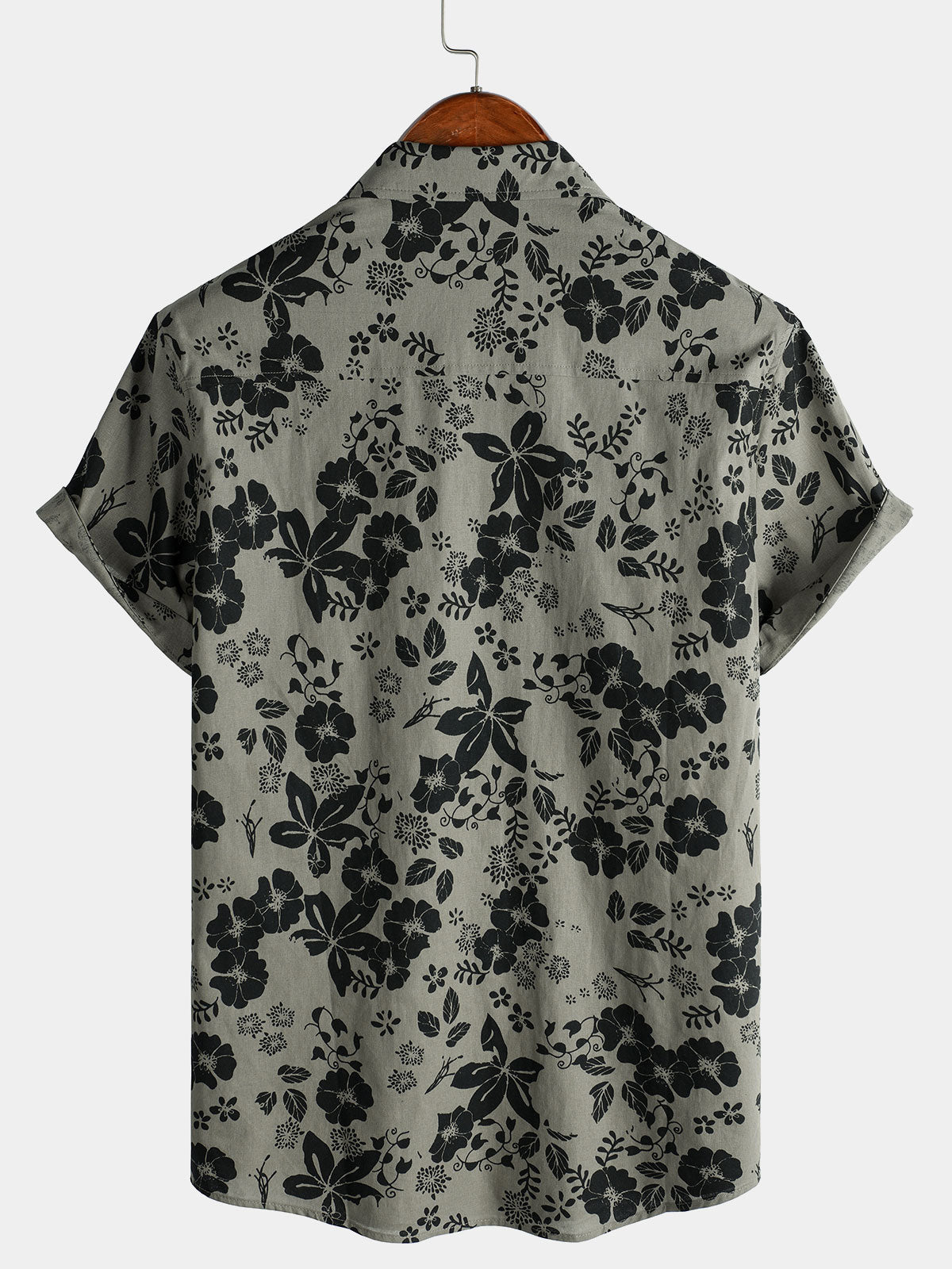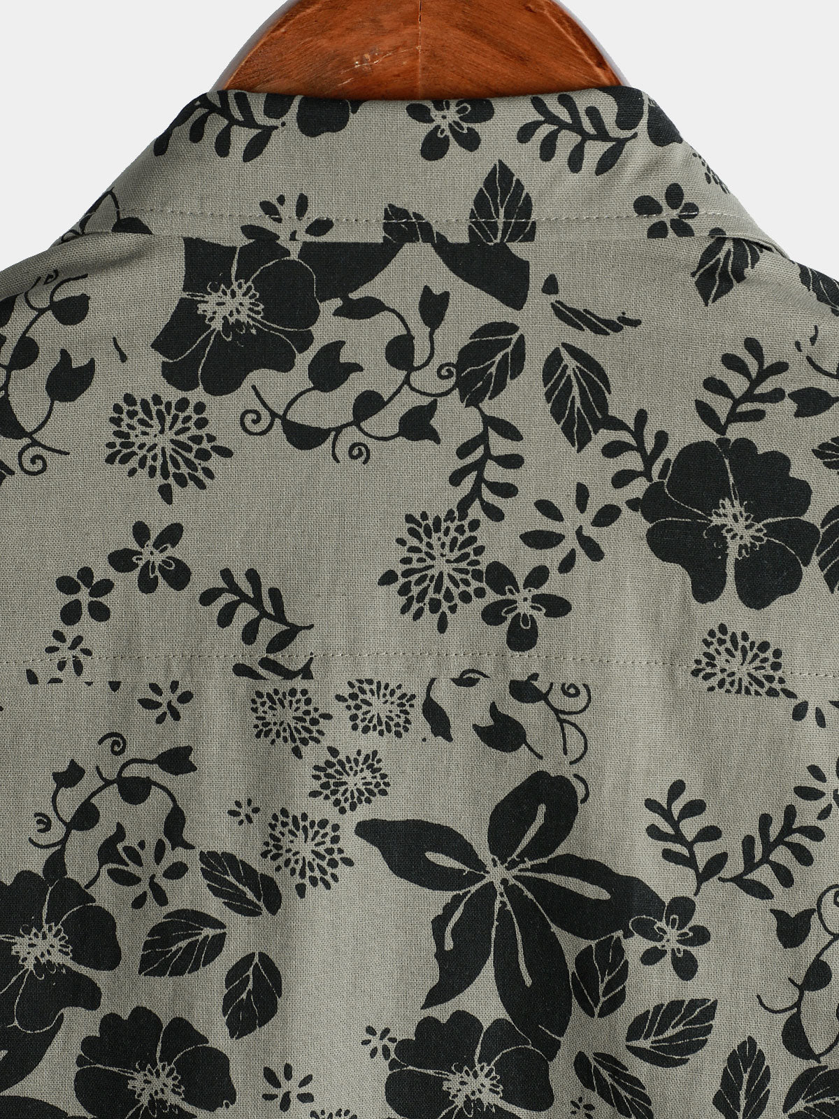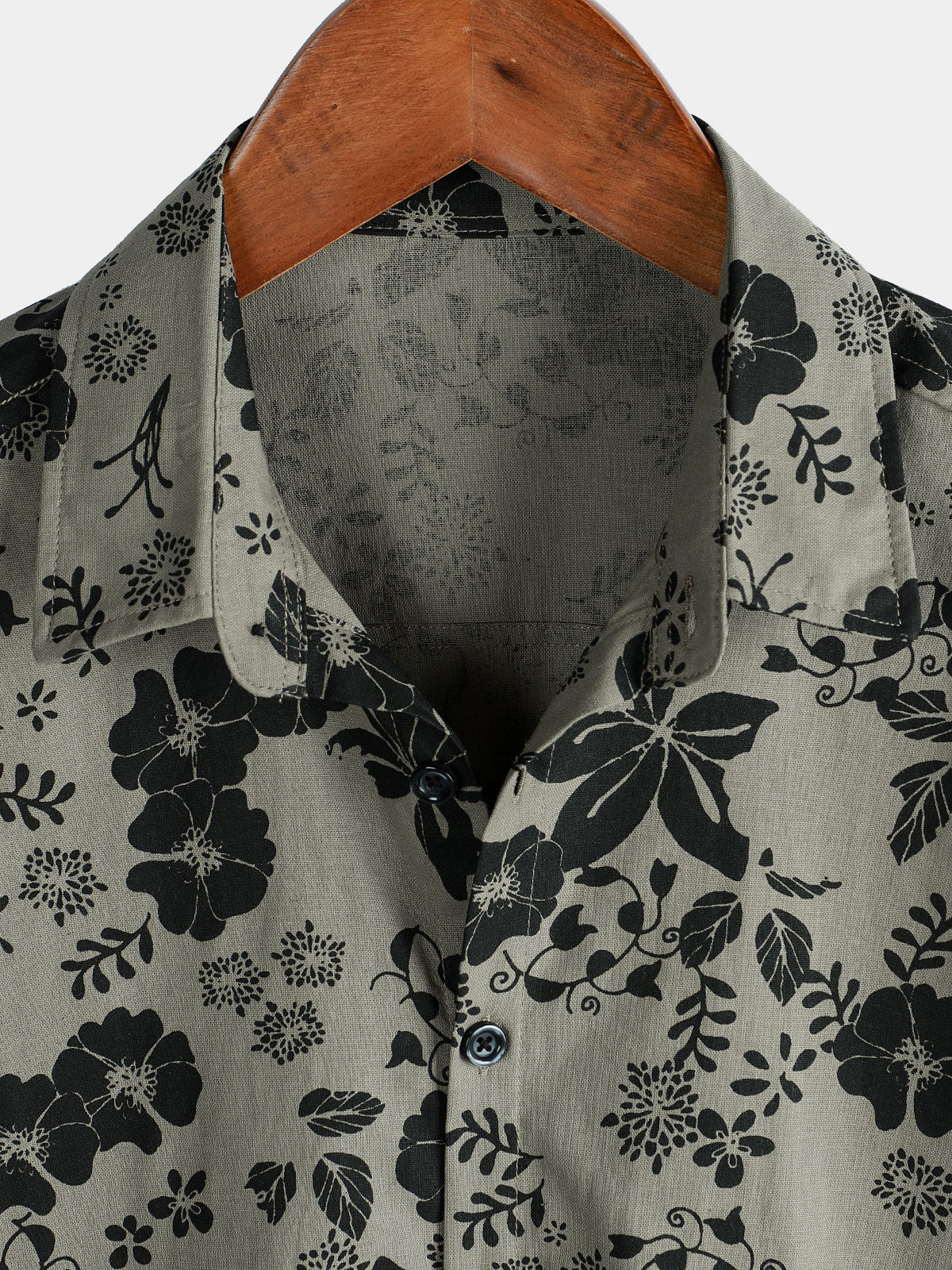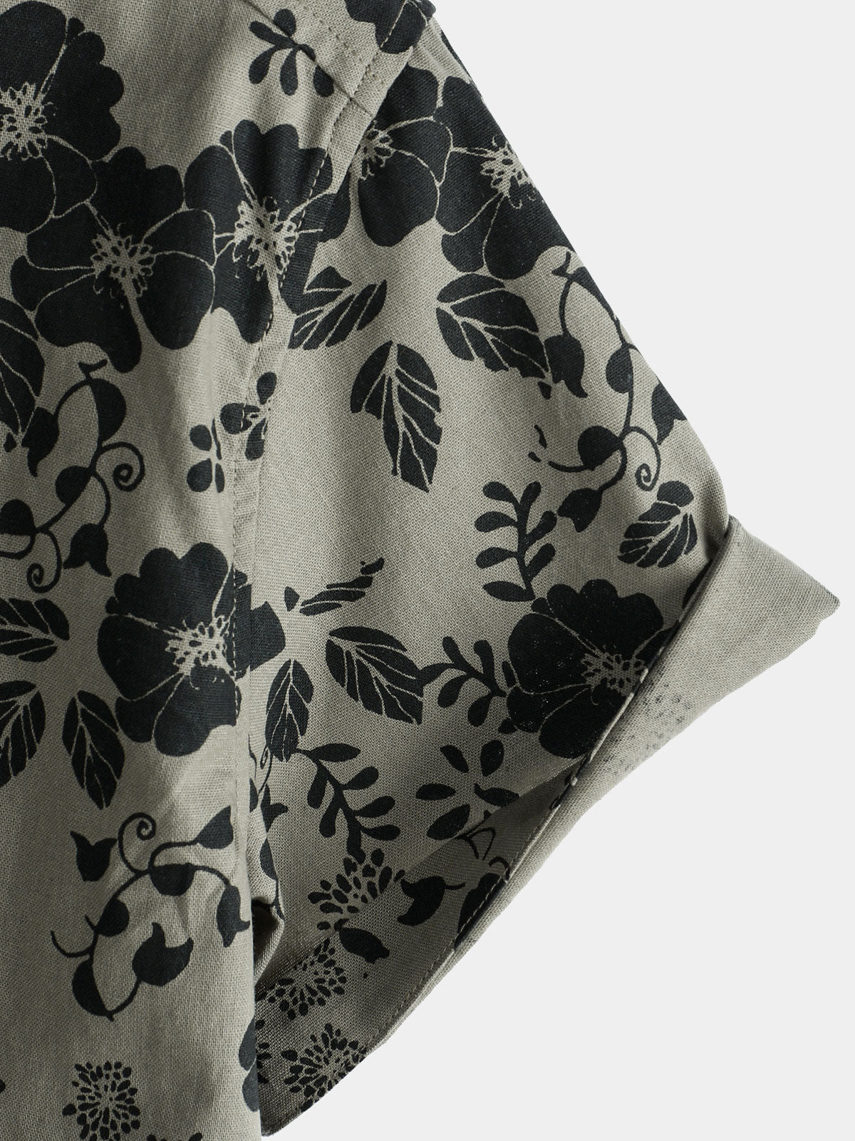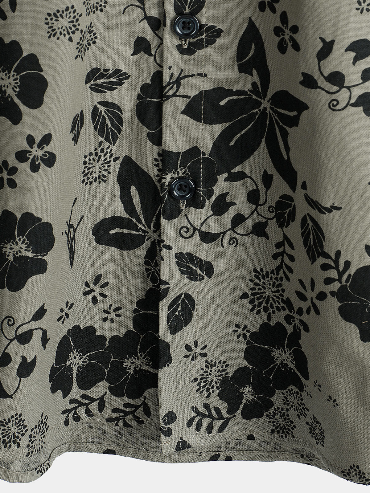 Men's Retro Floral Print Cotton&Linen Blend Breathable Shirt