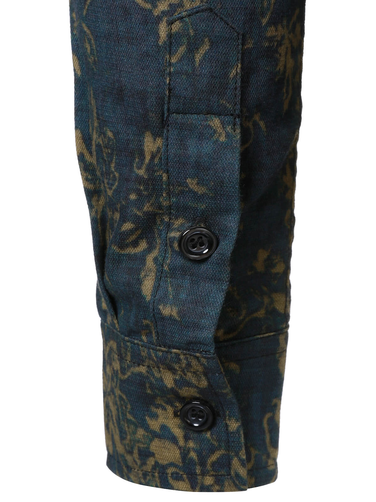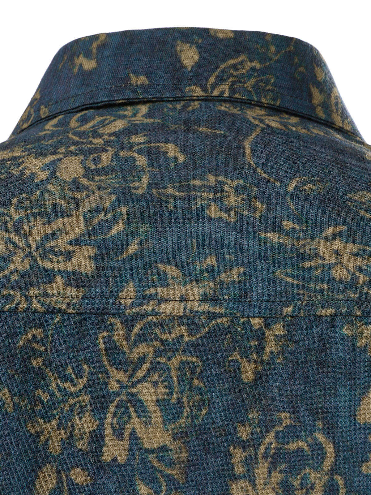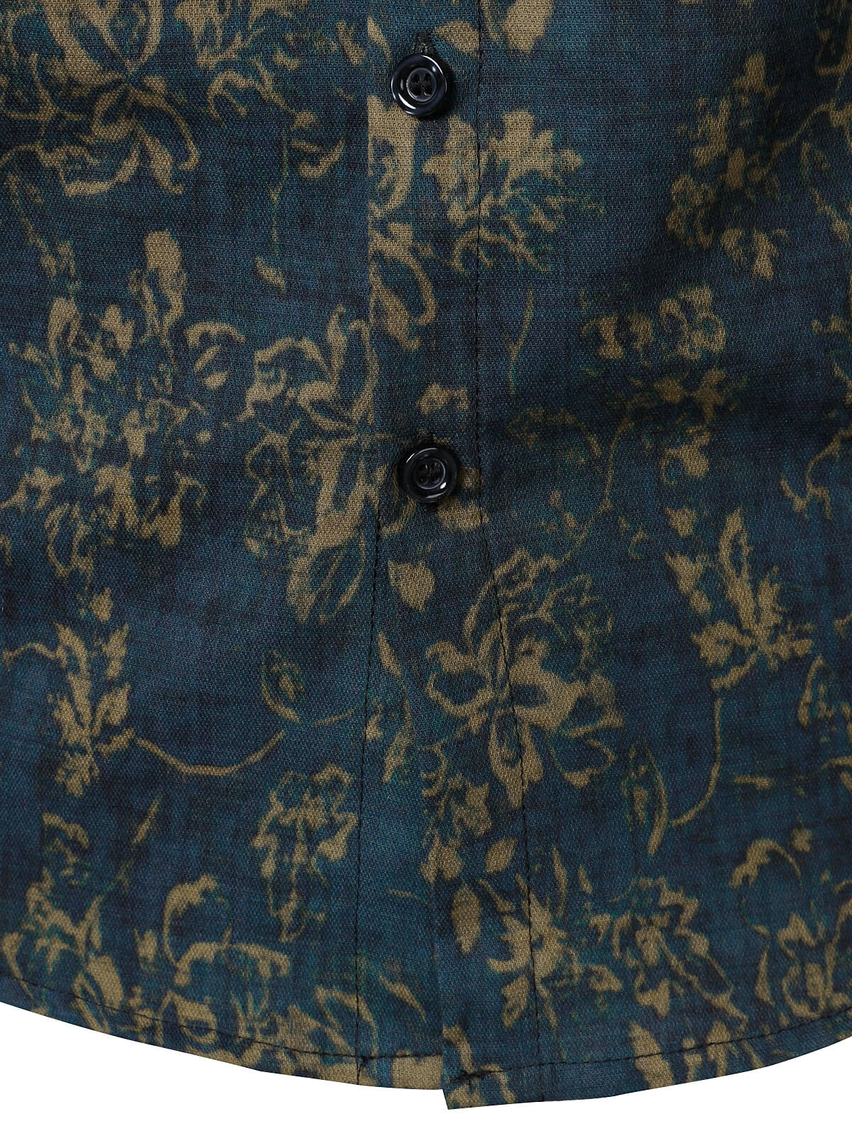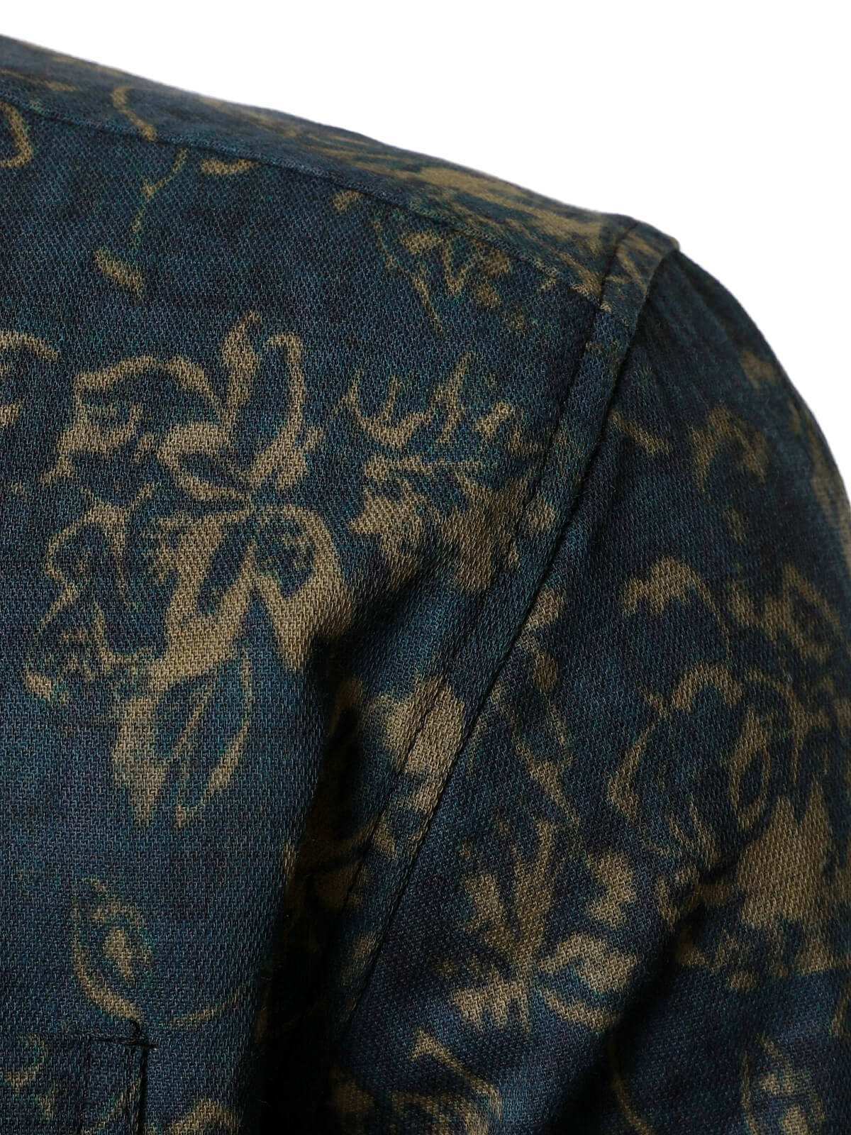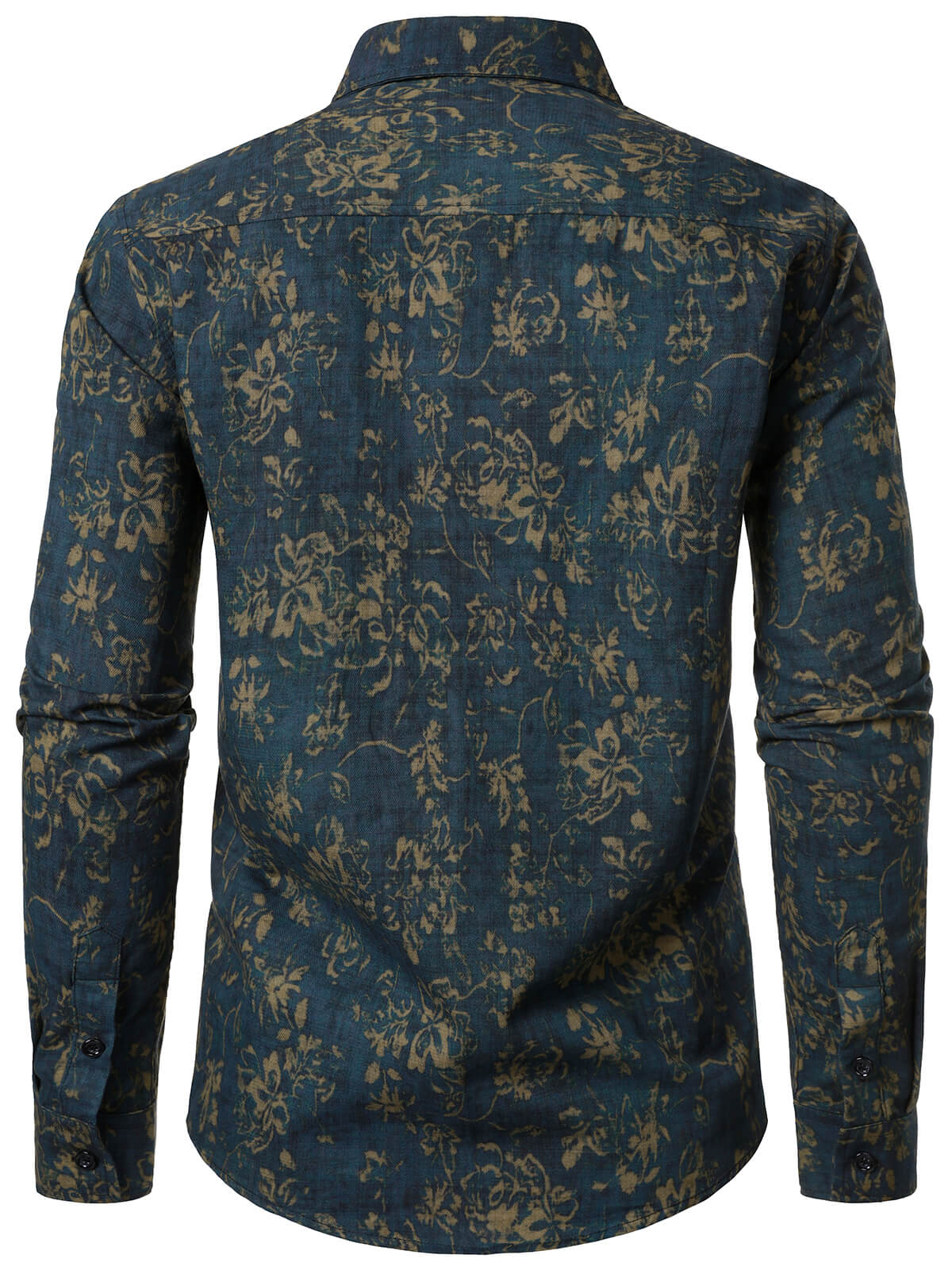 Men's Retro Floral Print Pocket Long Sleeve Shirt