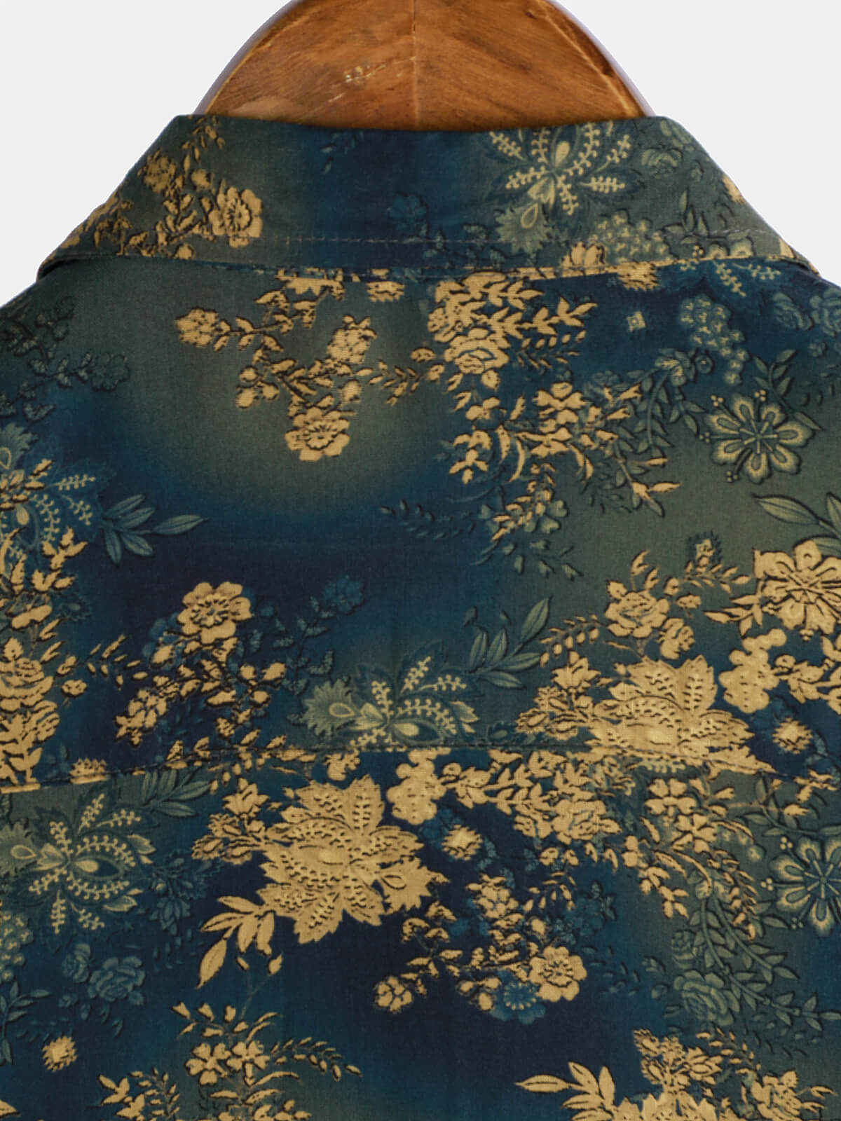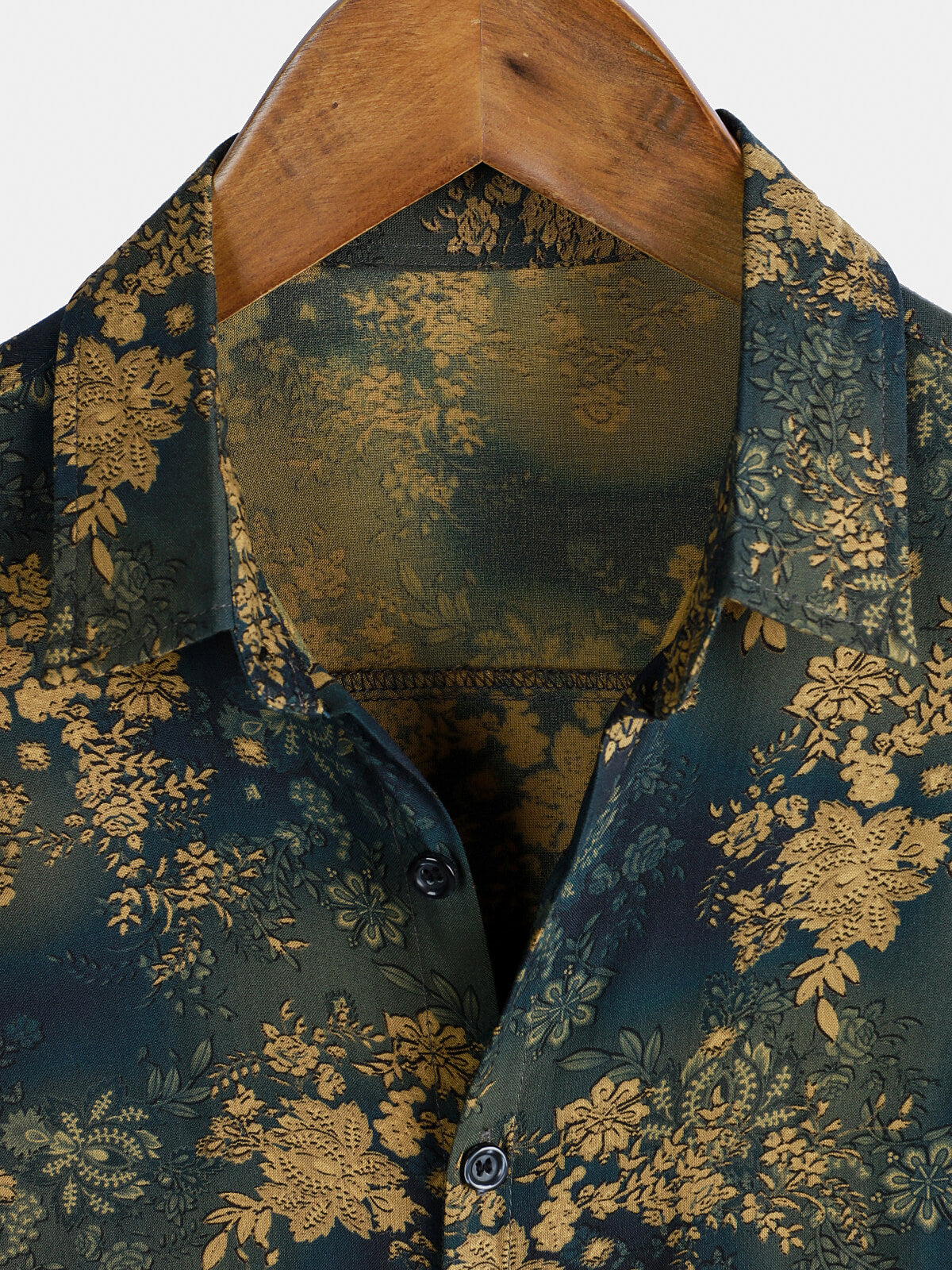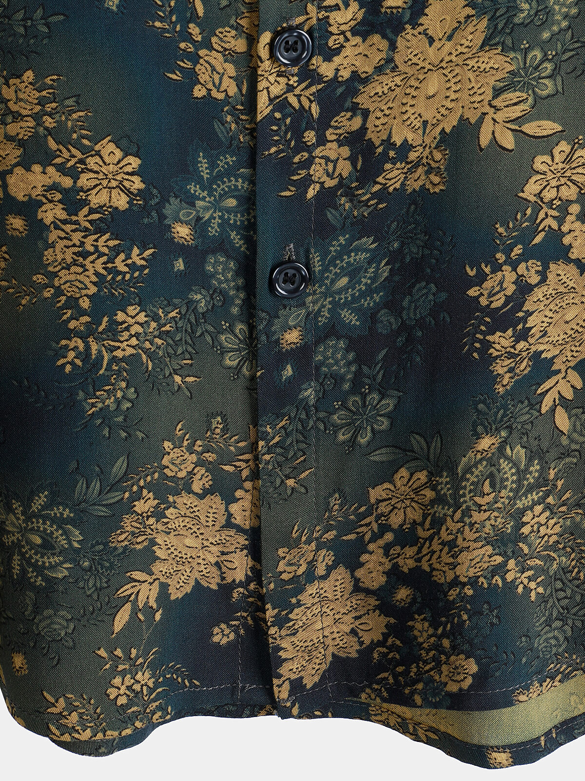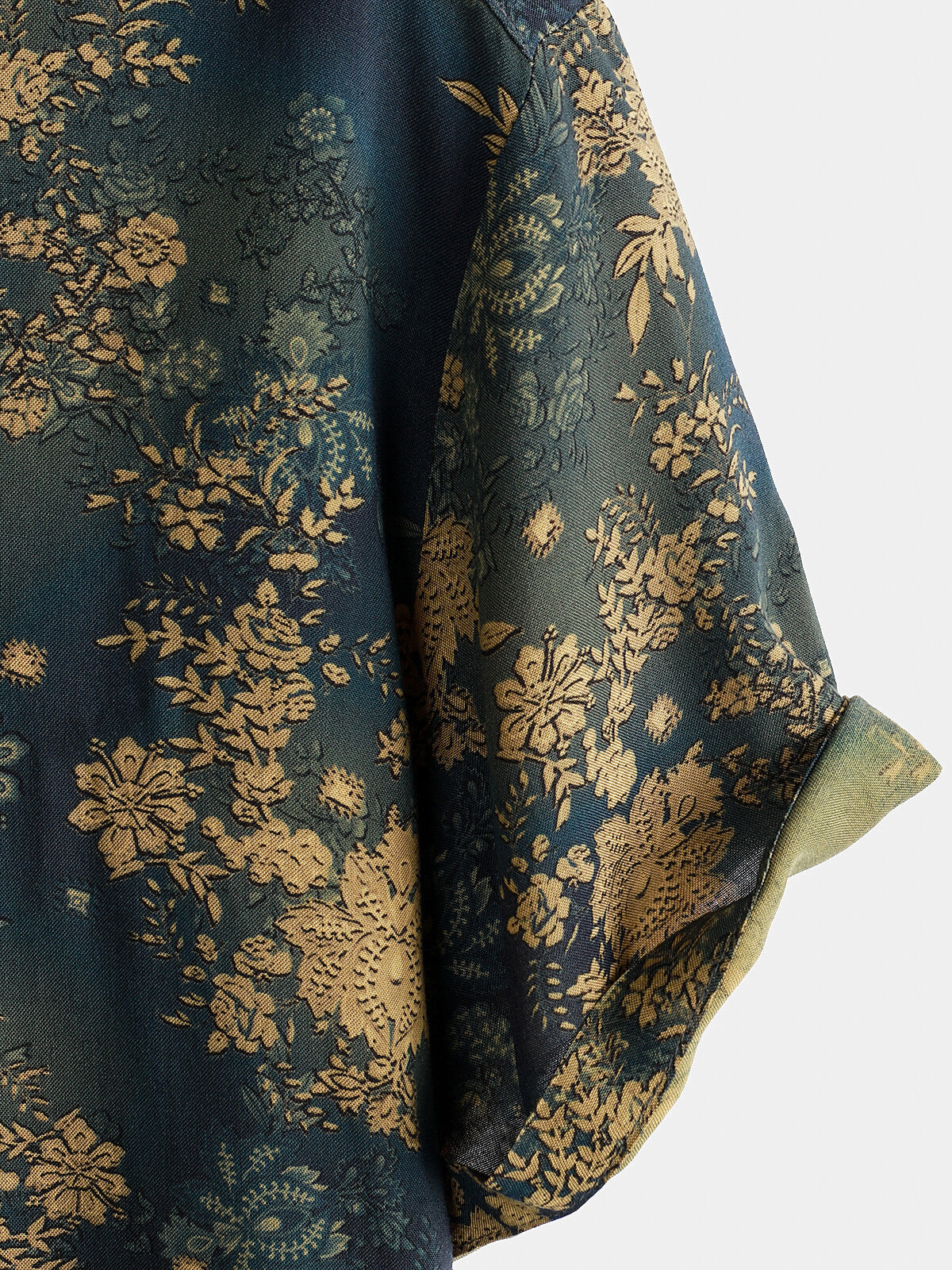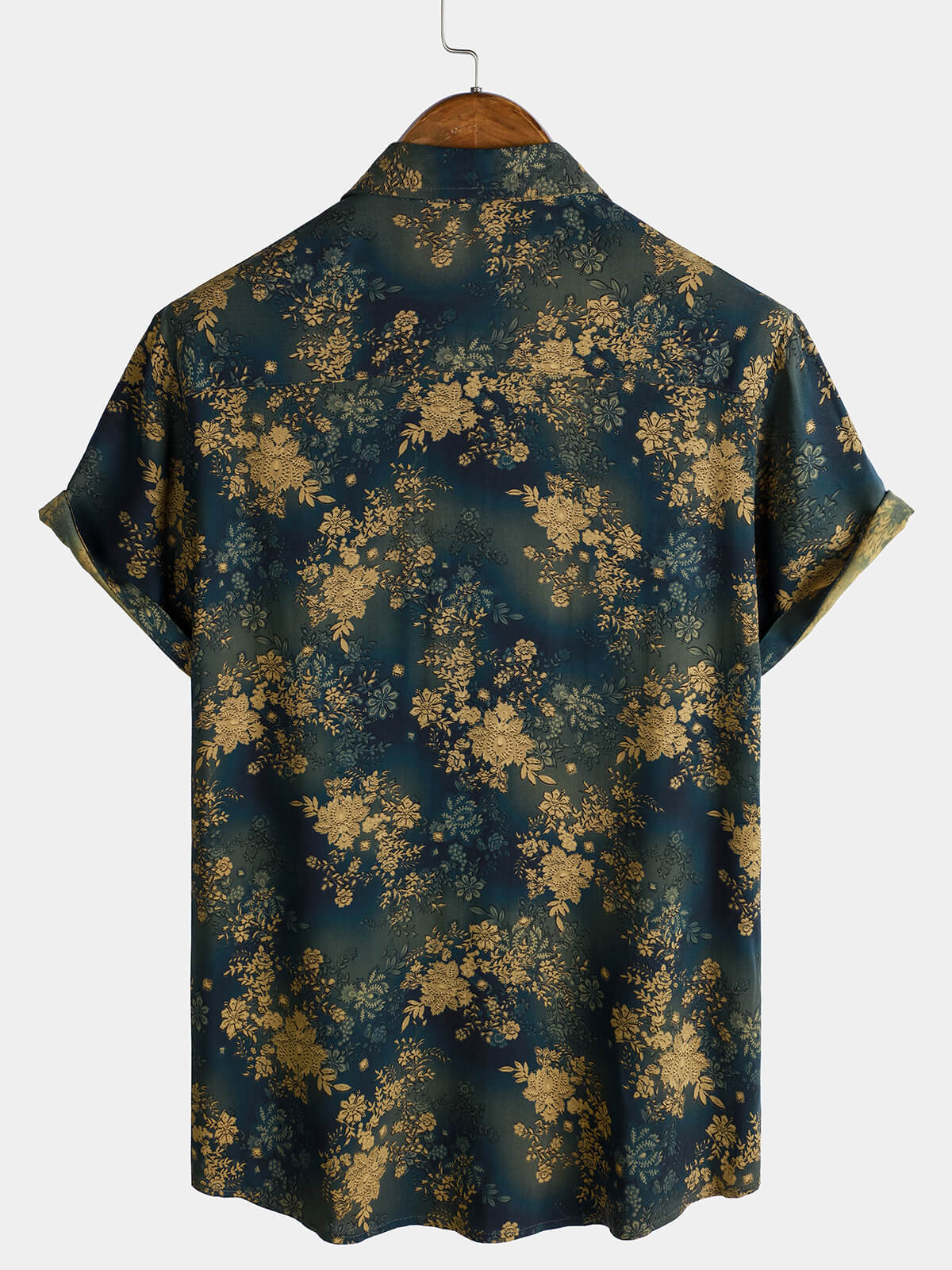 Men's Retro Floral Print Rayon Short Sleeve Shirt