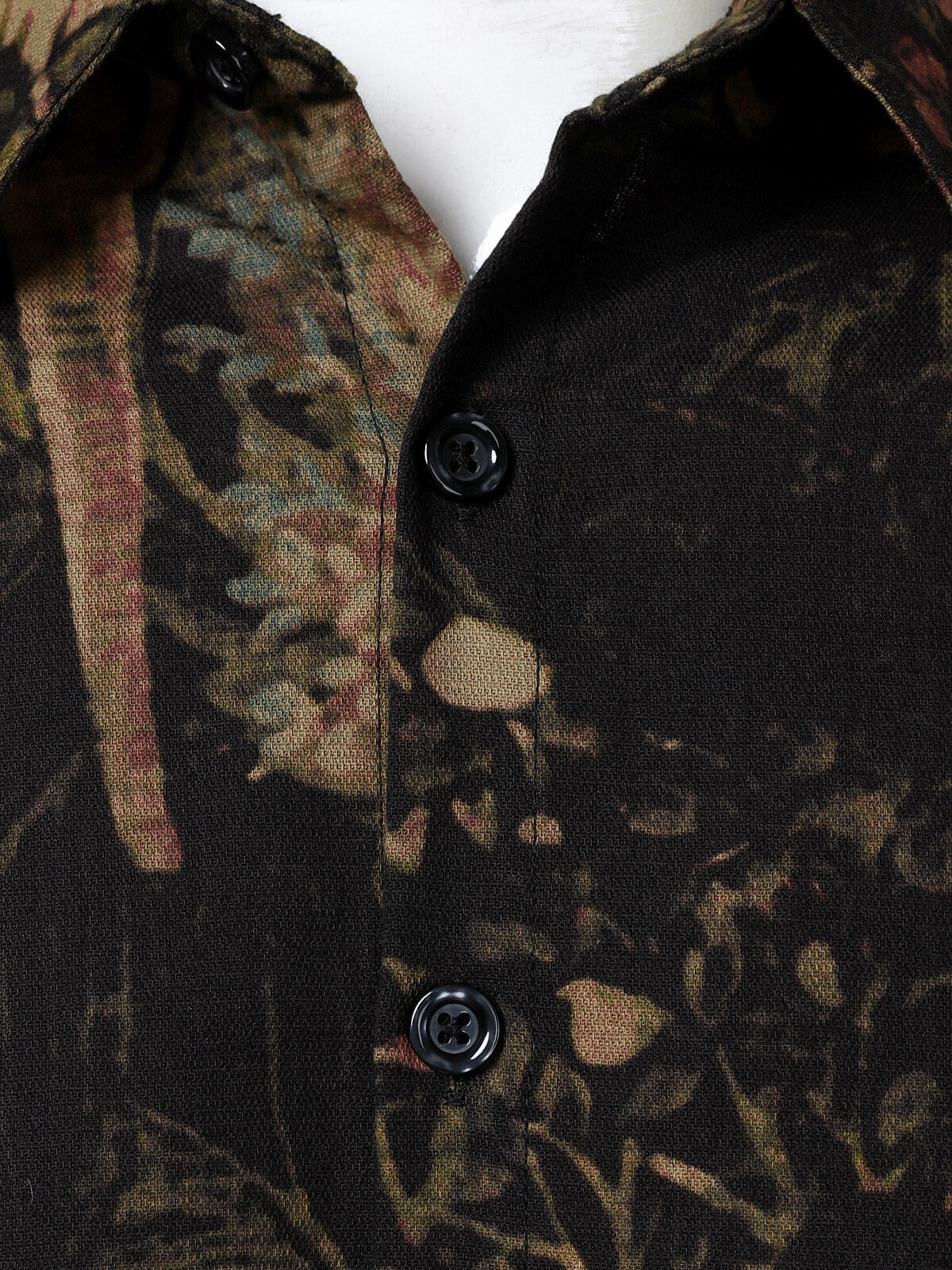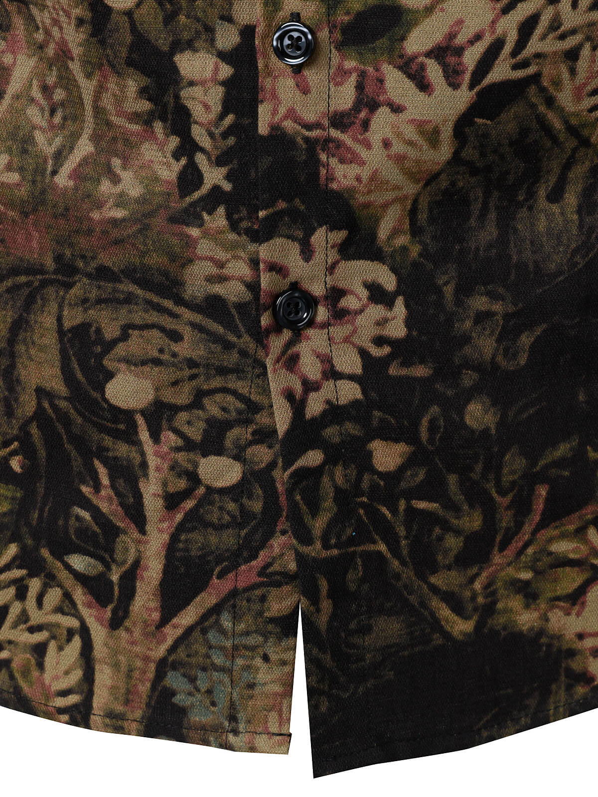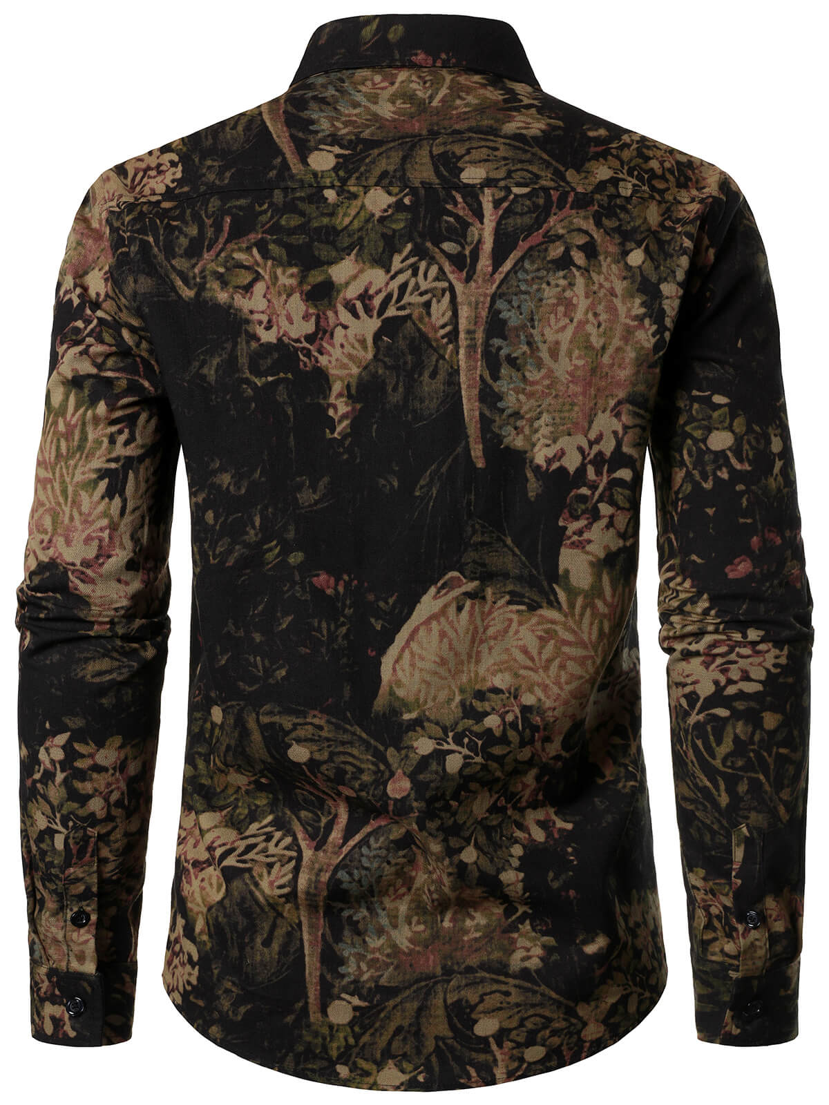 Men's Retro Plant Print Button Up Long Sleeve Shirt