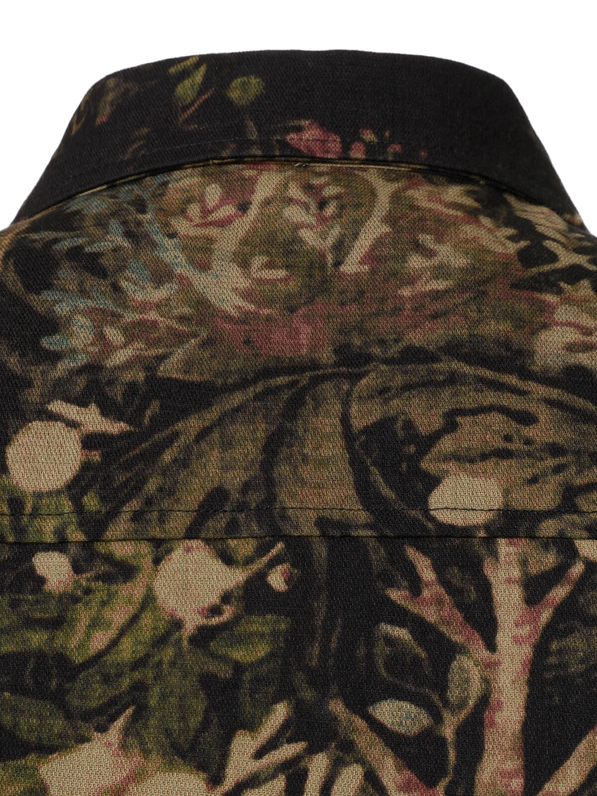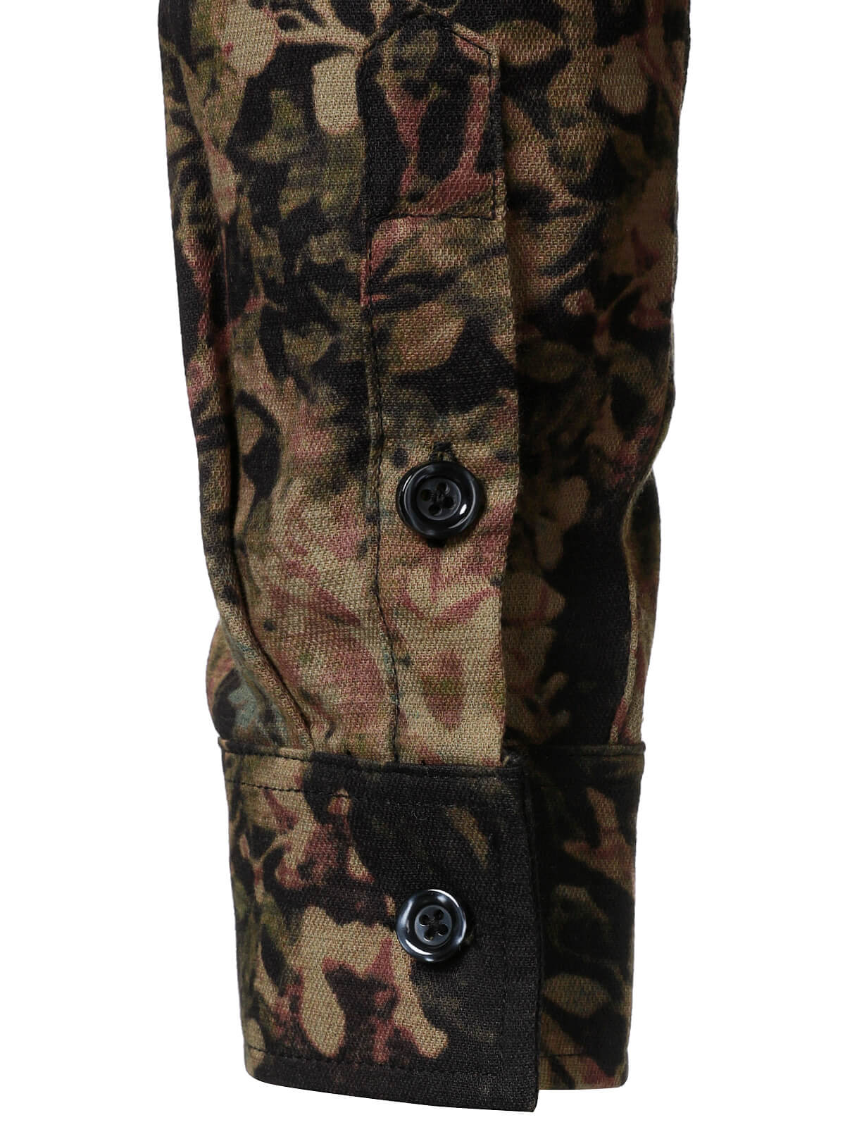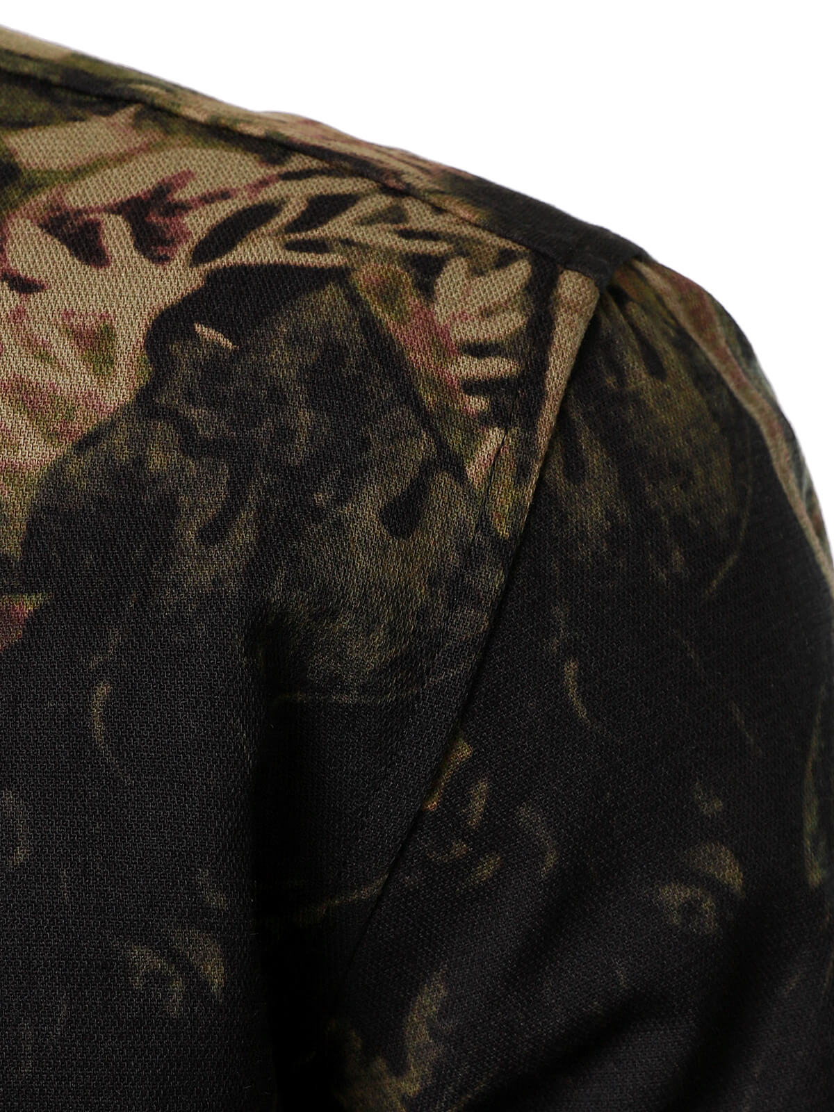 Men's Retro Plant Print Button Up Long Sleeve Shirt