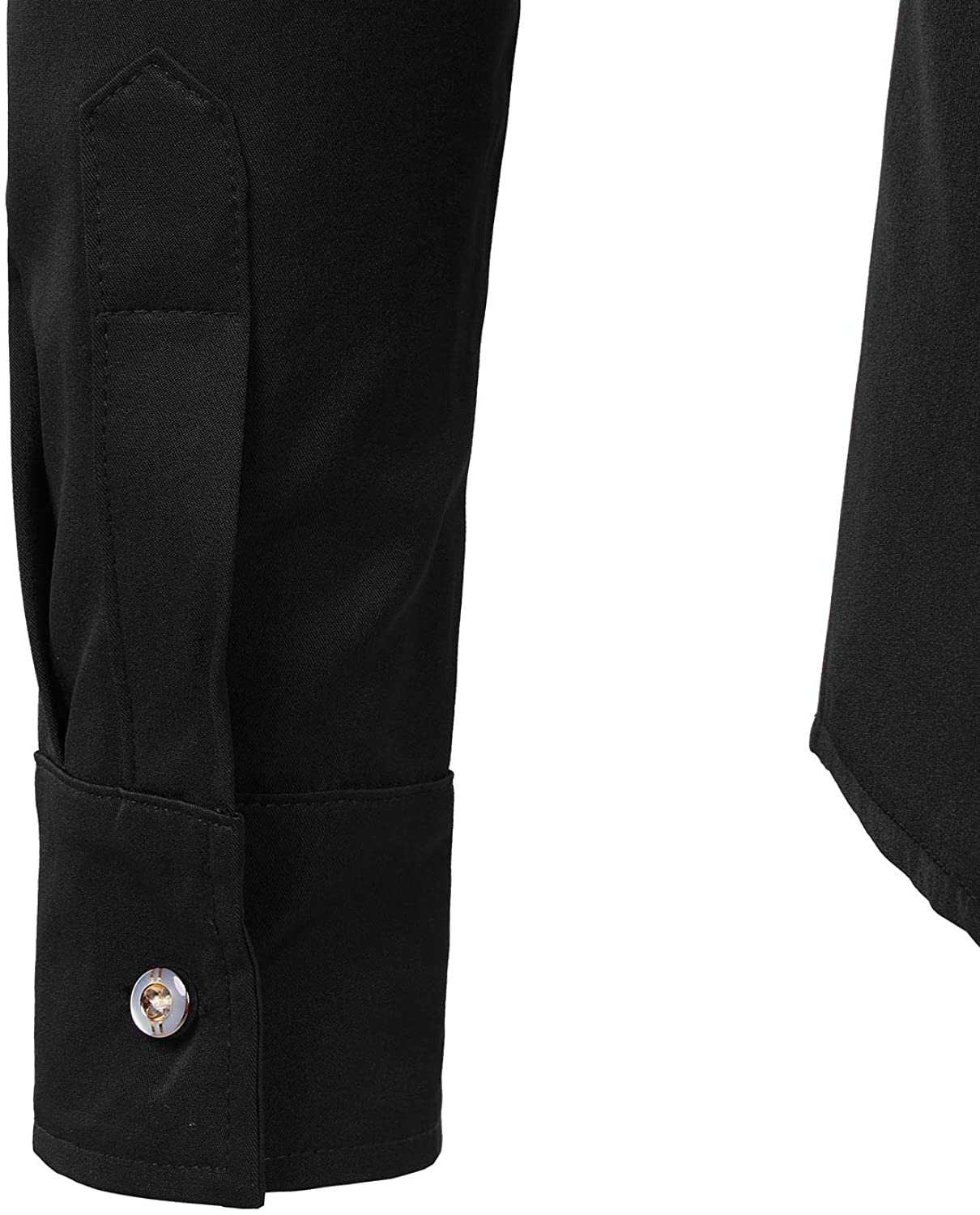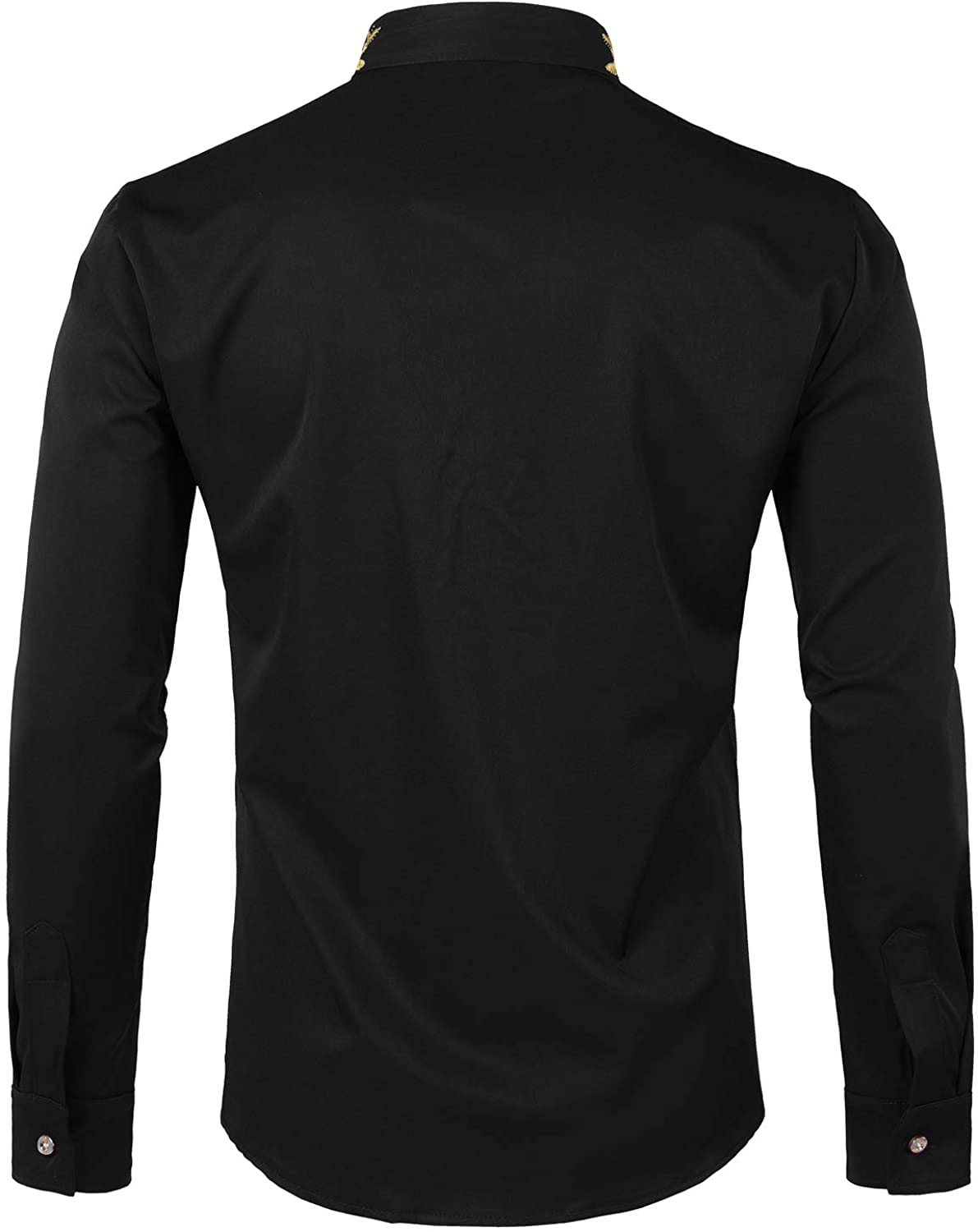 Men's Solid Color Collar Embroidered Long Sleeve Shirt