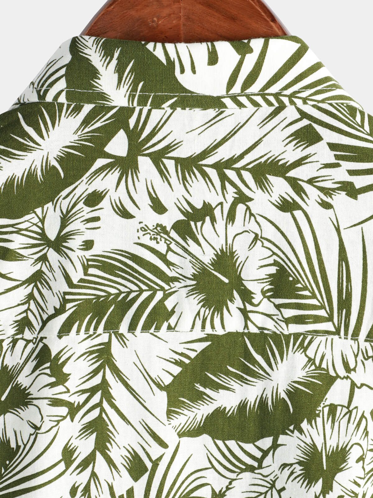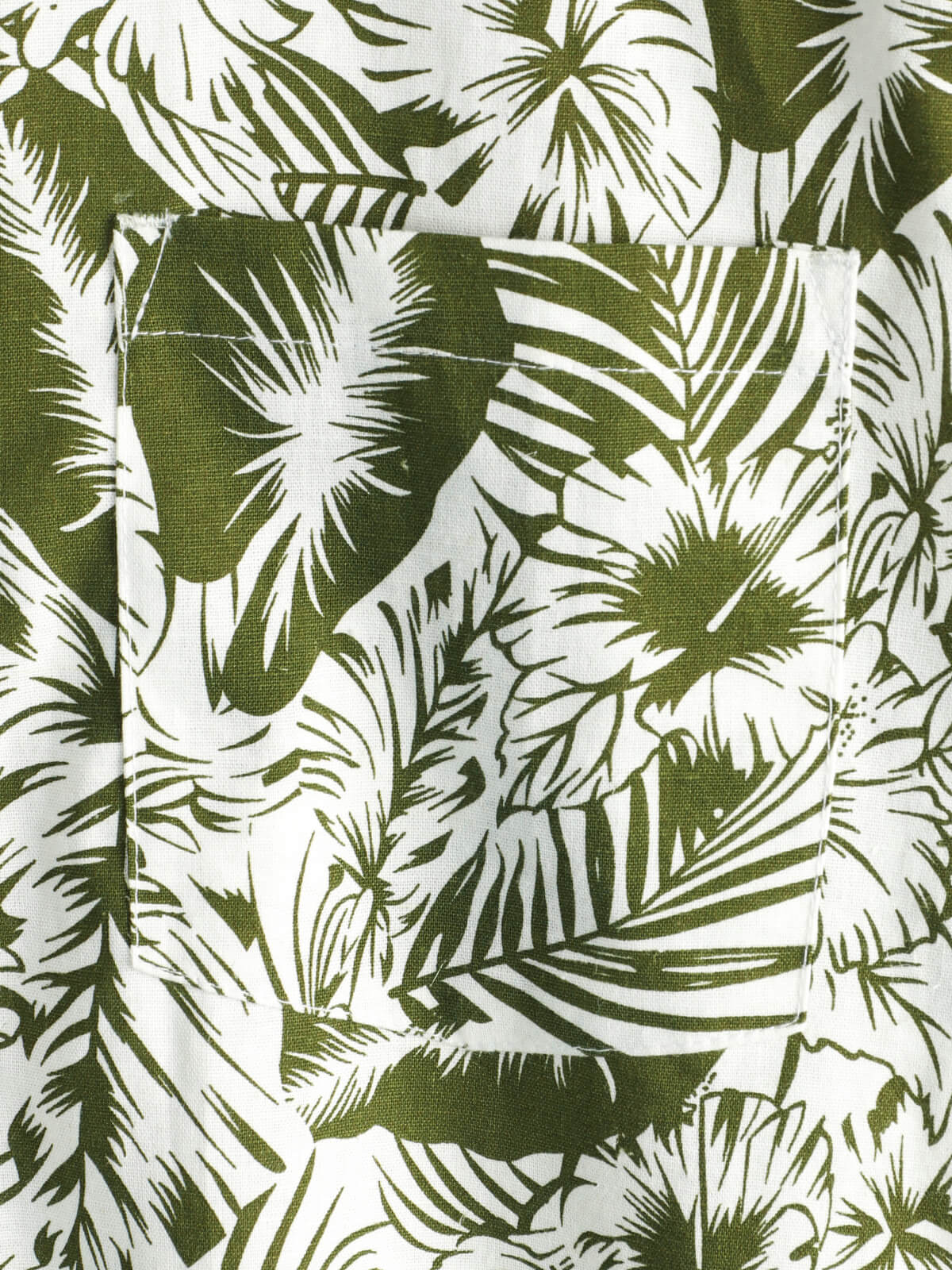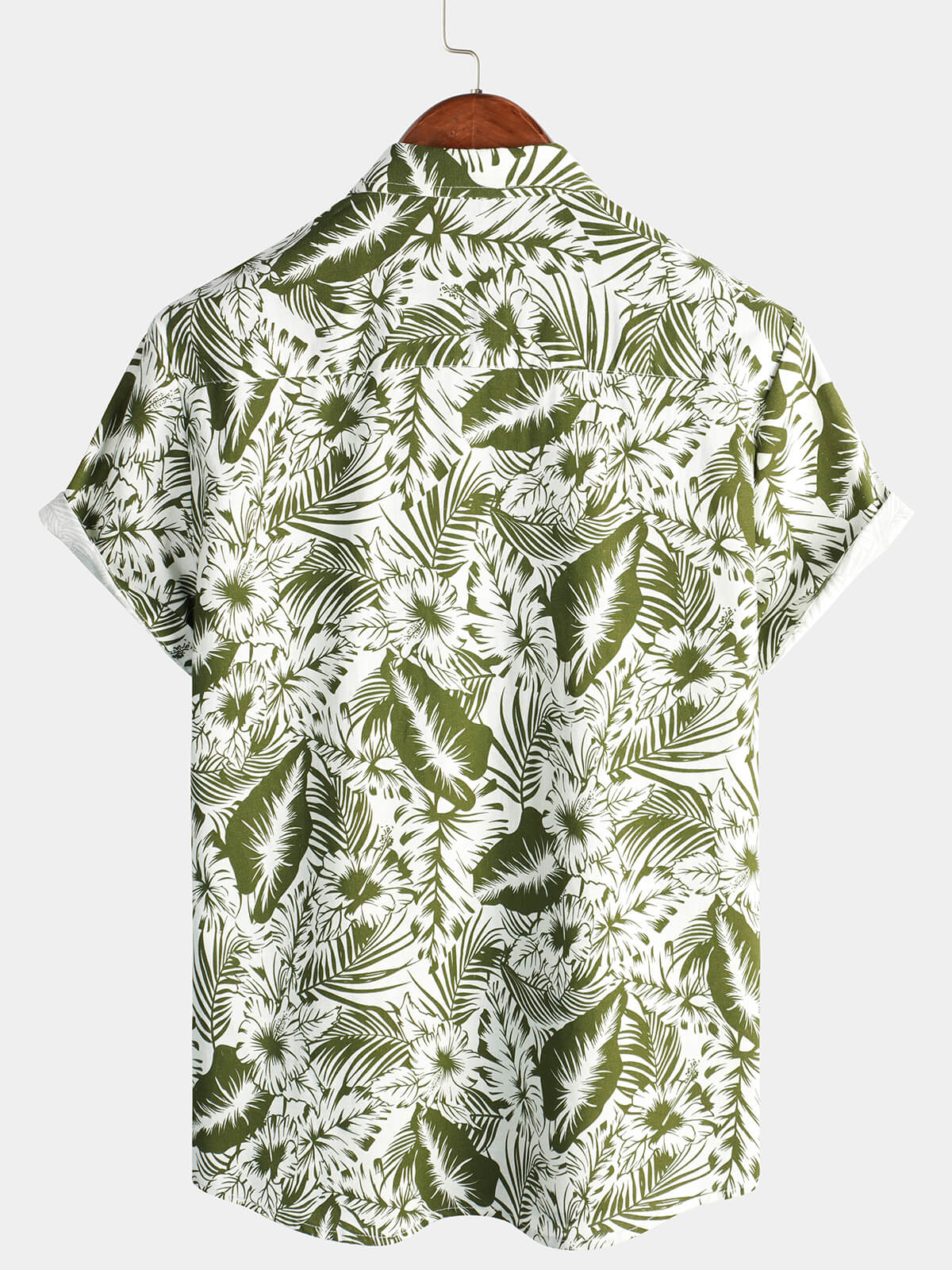 Men's Tropical Floral Print Beach Pocket Cotton And Linen Summer Short Sleeve Shirt