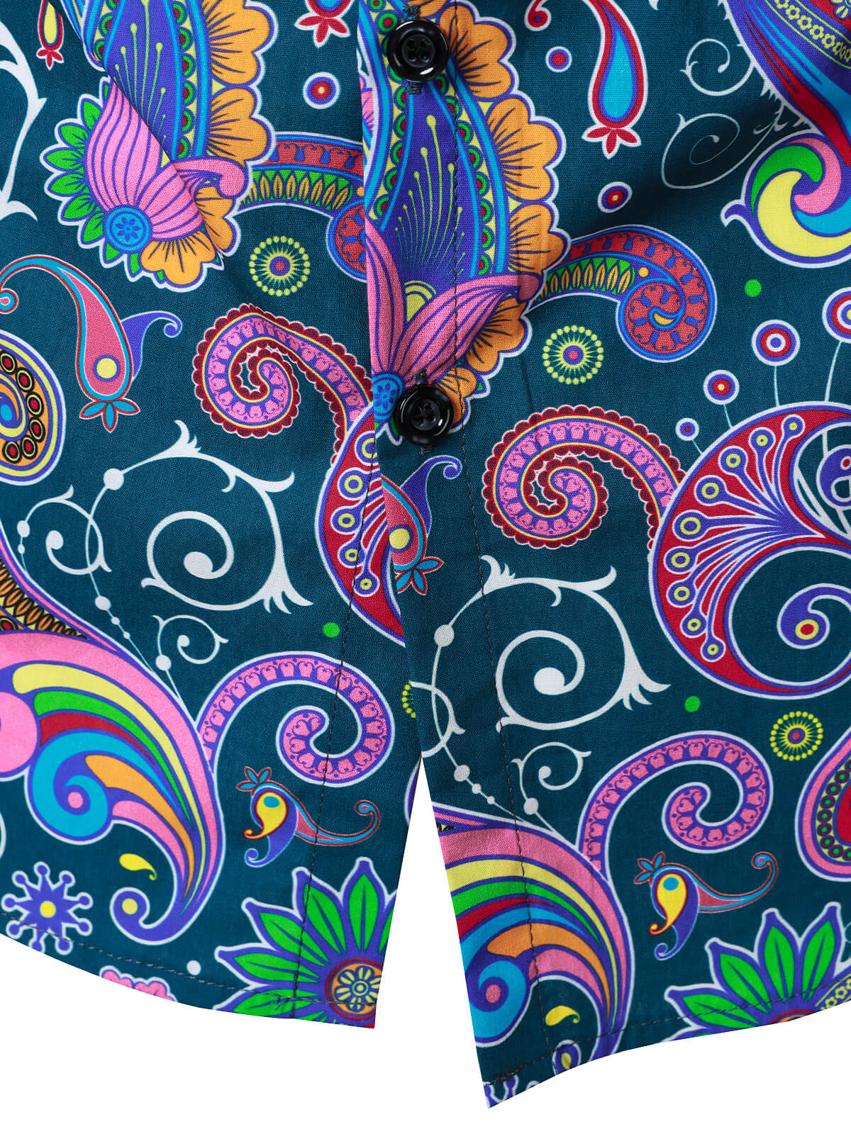 Men's Vintage 70s Paisley Print Cotton Disco Long Sleeve Shirt