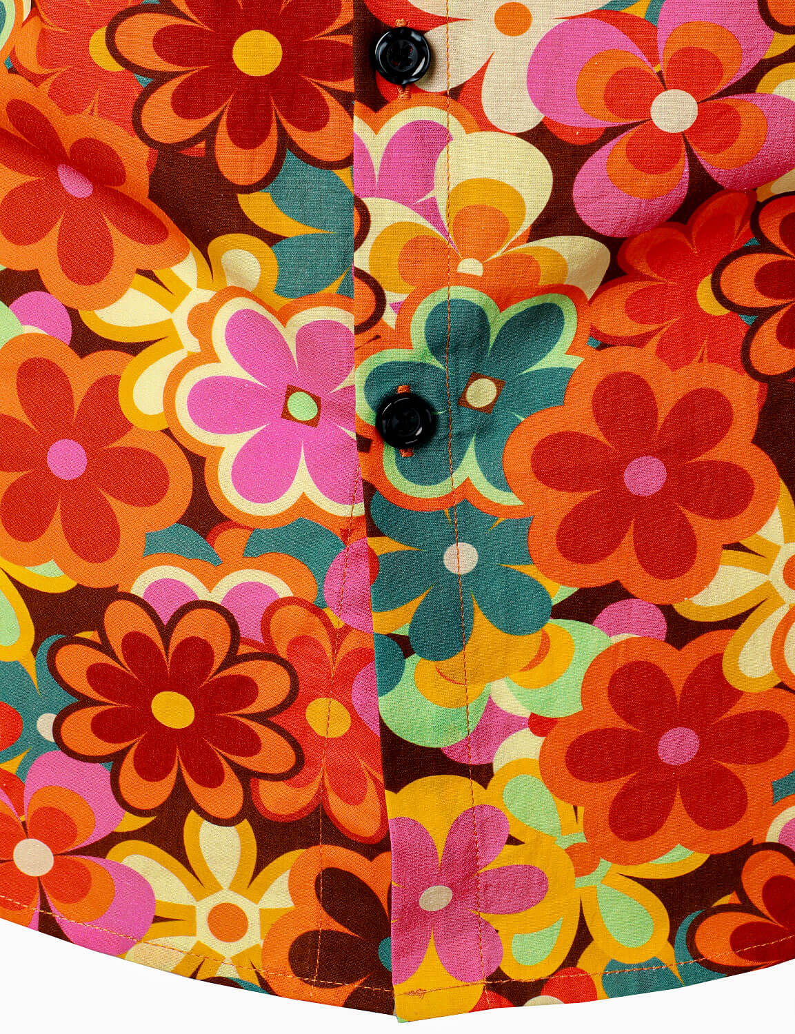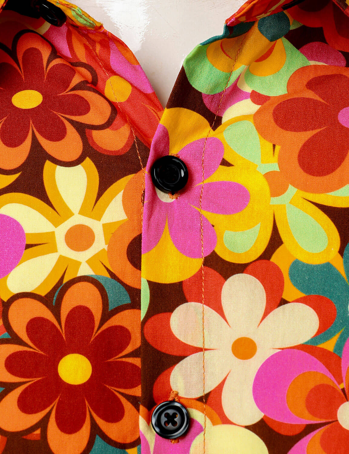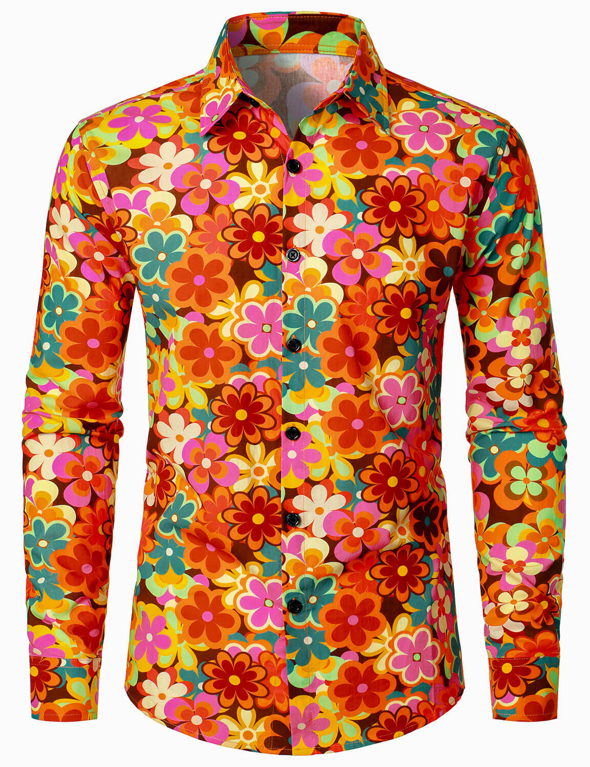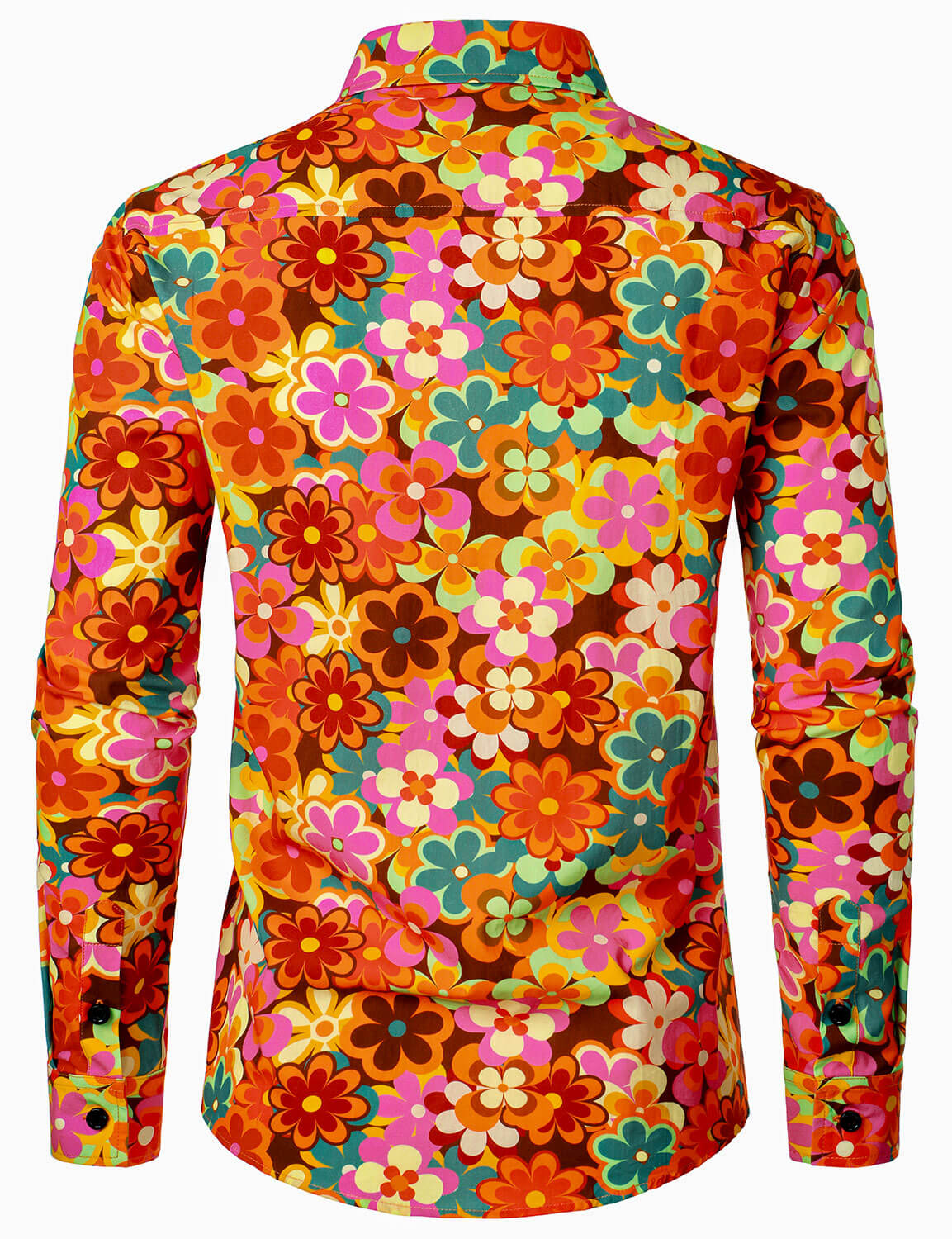 Men's Vintage Floral 70s Party Long Sleeve Shirt