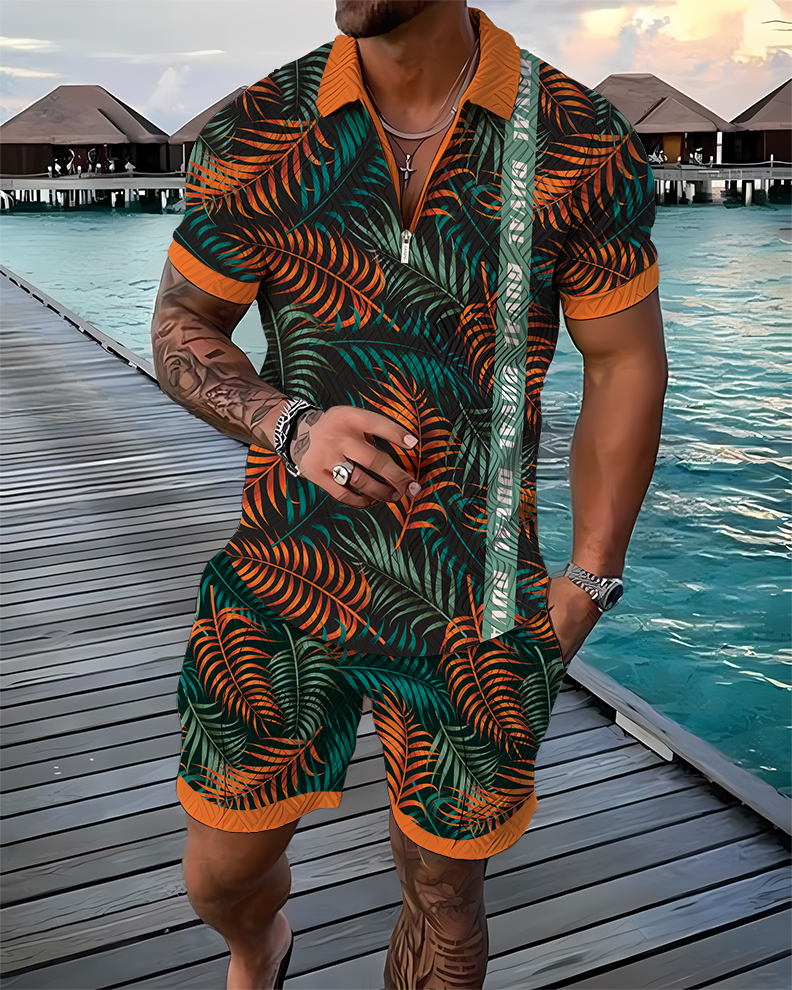 Tropic Leaf Duval Taped Polo Shirt And Shorts Co-Ord